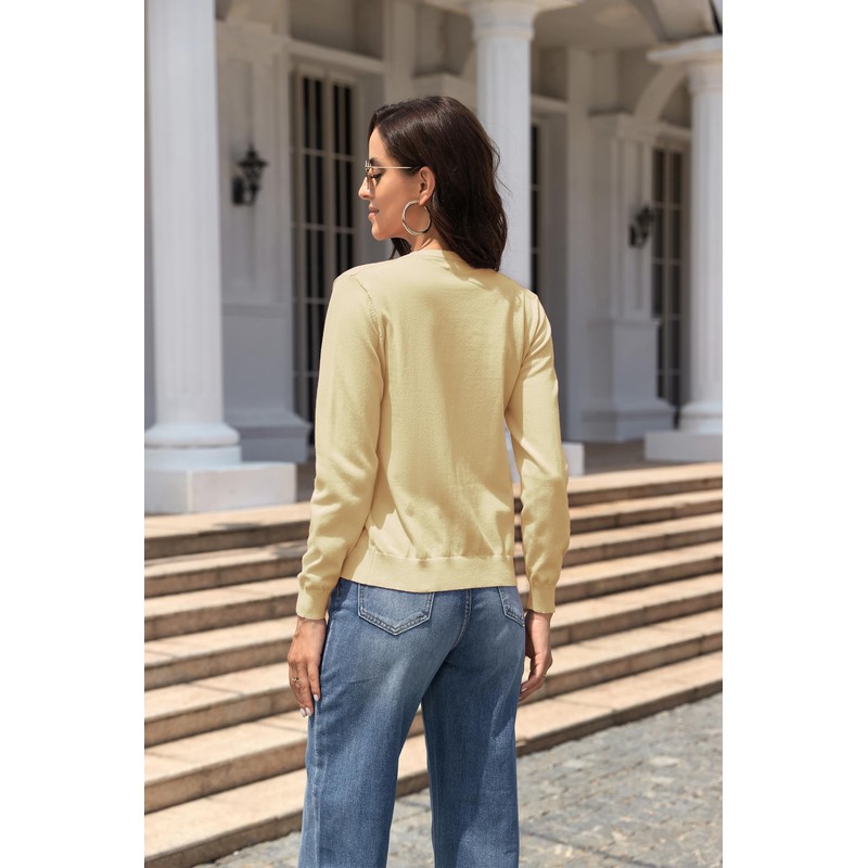 BERESIA Ladies Cardigan Womens Knit Sweater with Buttons Round Neck Crewneck Coat Elegant, Light Yellow S