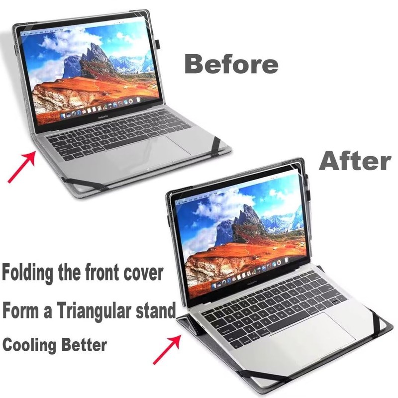 - 【 BRACKET DESIGN】Folding the front cover can form a triangular bracket to support dissipation heat . it can make your Laptop Cooling better ,It is very friendly to your notebook.