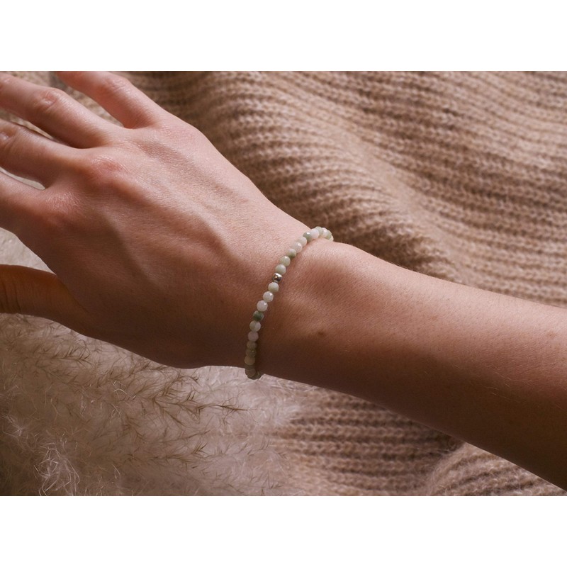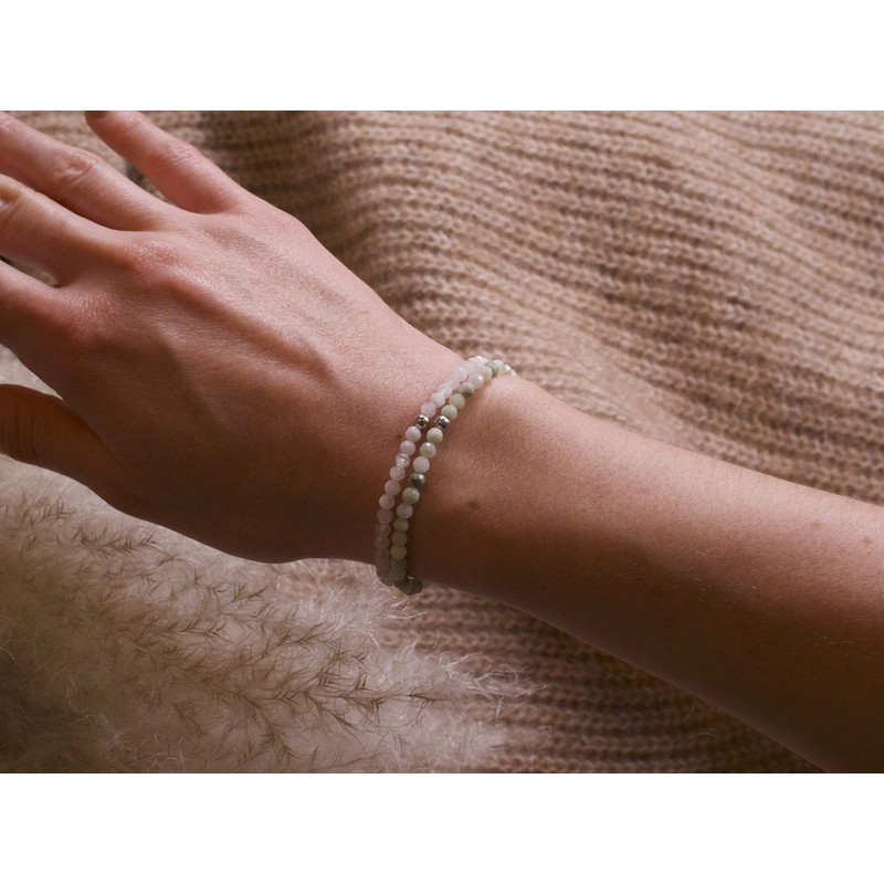 - Faceted pearl bracelet: The filigree natural stone beads are equipped with a facet cut. A delicate silver pearl made of 925 sterling silver rounds off the design. The bracelets are handmade and unisex. There is also a sustainable linen bag, very nice as a gift and for storing the bracelet!