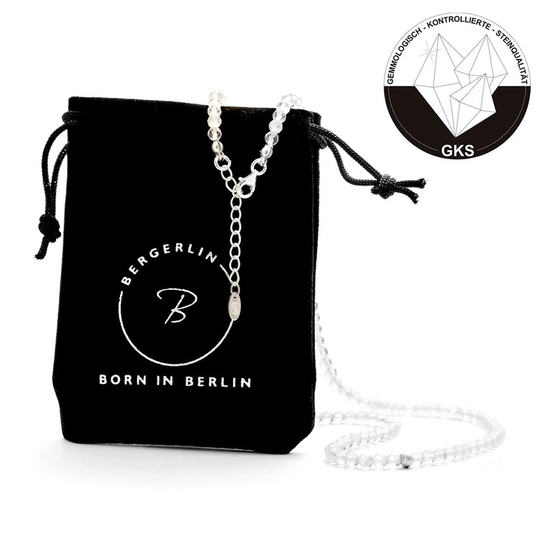 - Does the necklace fit me? The mountain crystal chain is made with an individually adjustable clasp. The mountain crystal chain is available in the sizes: 40 + 5 cm and 50 + 5 cm available, see graphic in the last picture! The chains are handmade and unisex. There is also a fine velvet bag - very nice as a gift!