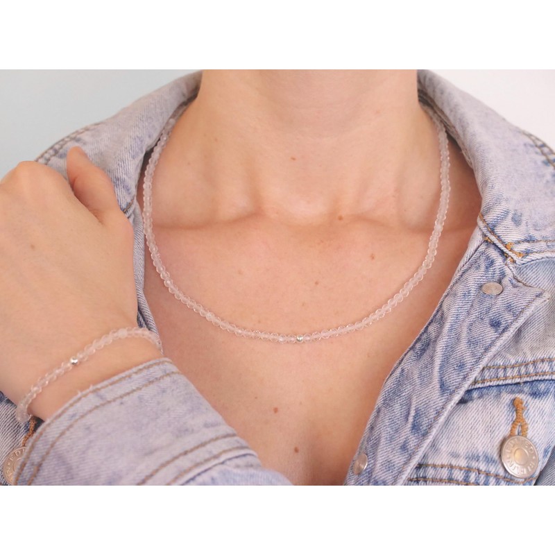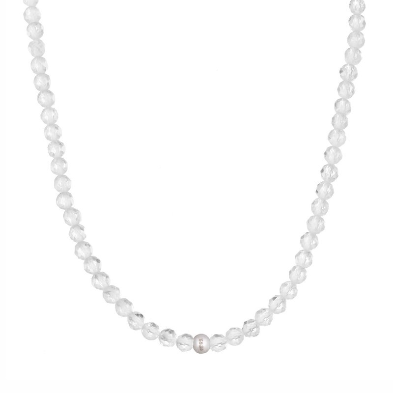 - Faceted pearl necklace - The natural stone beads are decorated with a fine facet cut. A delicate silver pearl and a clasp made of 925 sterling silver complete the design. Natural stone combination - Get a matching rock crystal bracelet with the filigree necklace, see the penultimate picture.
