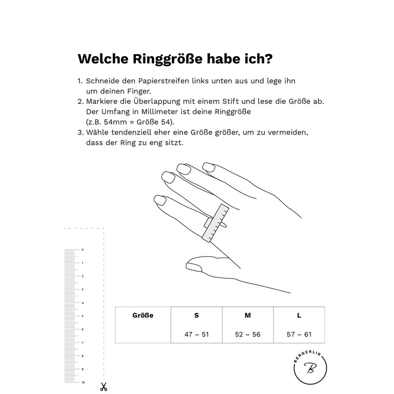- Does the ring fit me? - The faceted natural stone ring is made with an elastic band and is available in the following sizes: S = 4.7-5.1 cm; M = 5.2-5.6 cm; L = 5.7-5.9 cm. Measure your ring size with our graphic (last picture) and act in the interests of the environment by ordering the right size