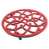 - ''' The enamel on cast iron design provides safety by allowing you to place hot cookware on it, rather than damaging surfaces countertop surfaces#||# Color: Red#||# The unique apple detail doubles this trivet as a decorative kitchen accent when not in use#||# Style and function all in one package'''