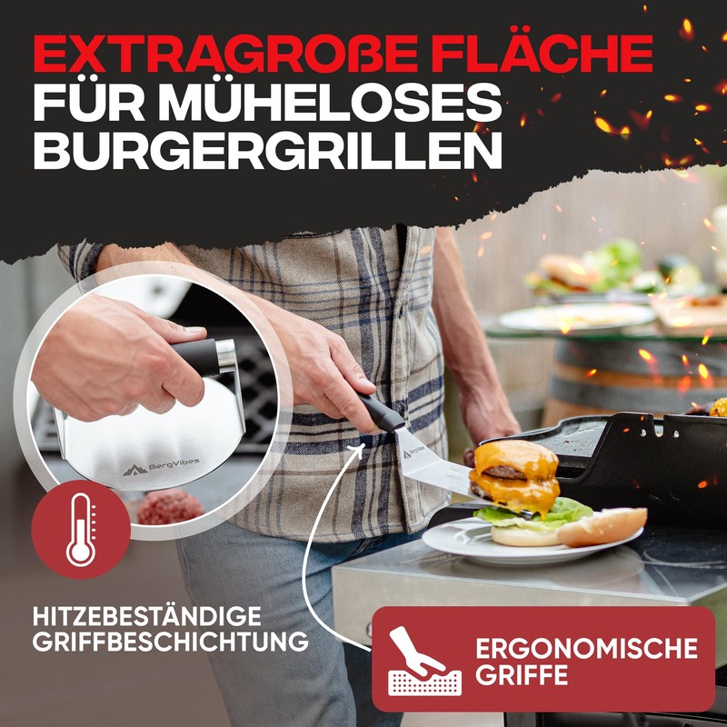 BERGVIBES Smash Burger Set of 3 Stainless Steel for Plancha, Smasher, Barbecue Turner, Grill Spatula, Ideal Gift Set
