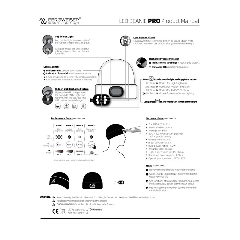 - γππππππππππ ππππγBERGWEISER Warm reflective beanie with motion sensor night light, trusty companion for outdoors like walking, jogging, biking, camping, fishing, traveling, running, auto repair; Indoors like getting up at night, reading, studying and other activities demanding hands-free lighting.