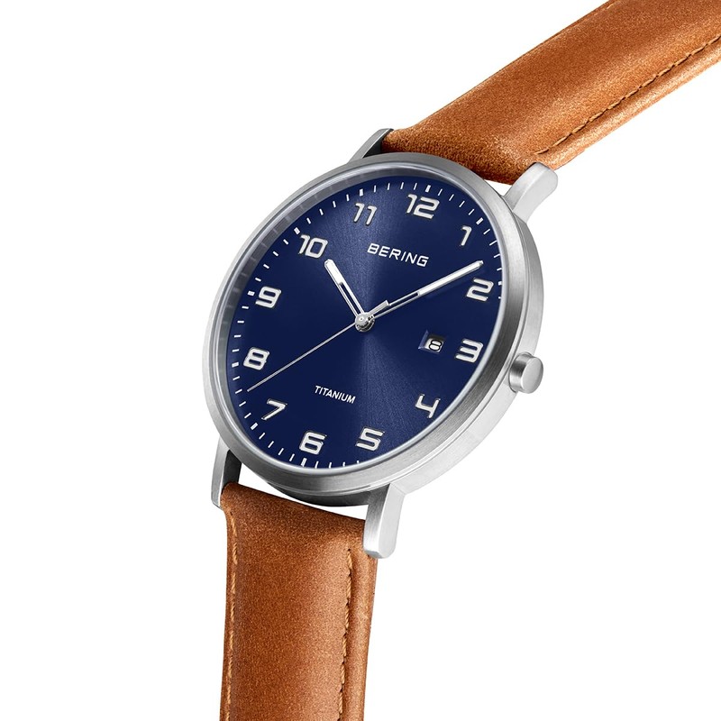 BERING Men's Quartz Movement Watch - Titanium Collection with Titanium and Sapphire Glass 18640-567, brown, Strap