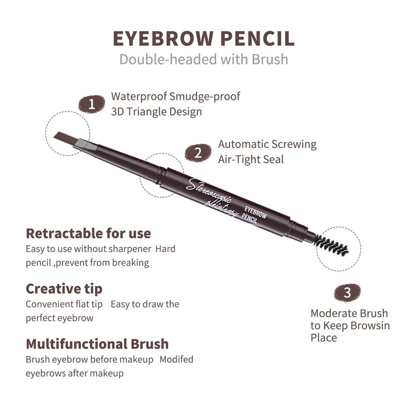- 【Double-Headed Design】Our the double-headed eyebrow pencil has been loved by consumers for its unique design and practical effects. Whether you are a makeup novice or a senior enthusiast, you can create an ideal eyebrow makeup effect by using the double-headed eyebrow pencil reasonably.