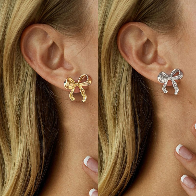 - Gold bow earrings : These bow earrings boast a chic butterfly bow design and elegant long tassel snake chains, combining fashion and grace effortlessly. Meticulously crafted, the butterfly bows exude artistic flair, while the swaying tassels add a captivating touch
