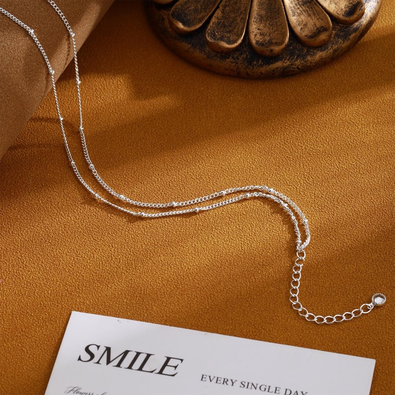 - Silver Anklet: This ankle bracelet with a layered beaded chain, giving it a simple and delicate look. A cute ankle bracelet for women is a must have summer jewelry! this necklace is perfect for everyday wear or partying