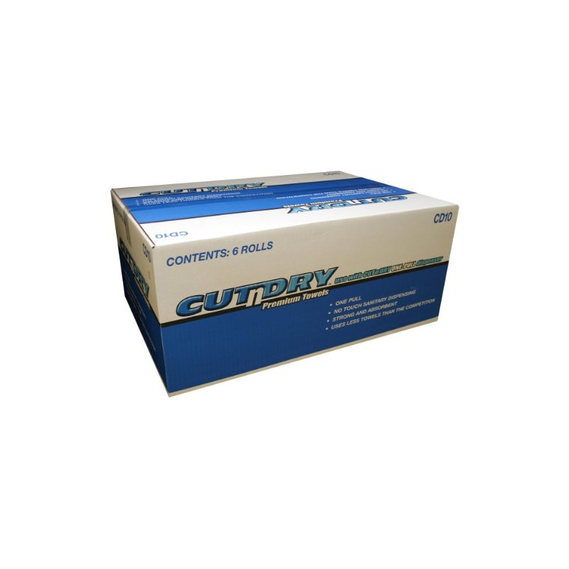 Berk Wiper CUTnDRY sanitary roll towel. Hands free dispensers. CUTnDRY is premium TAD (Through Air Dry) toweling that has great wet strength verses standard roll toweling and a bright white color. Designed for use with our CUTnDRY one-pull dispenser. Great for restaurants, schools, office, institutions. 700 towels per roll, 6 rolls per case. Measures 10-inches length by 8-inches width.