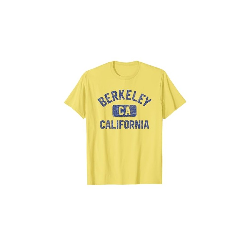 Berkeley California Gym Style Yellow w Distress Blue Print T-Shirt
