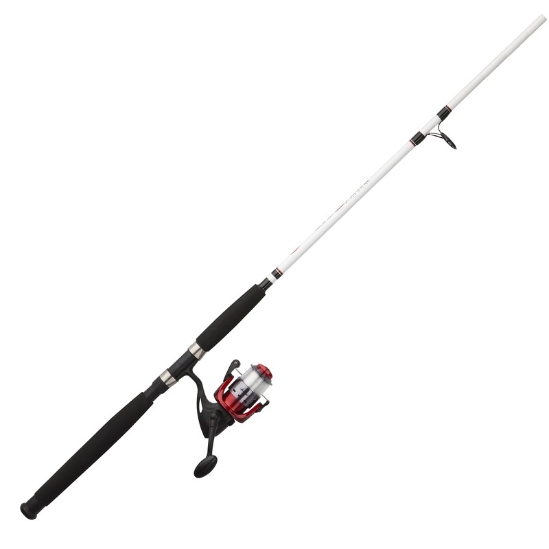 Berkley 8’ Big Game Spinning Fishing Rod and Reel Spinning Combo, 2 Ball Bearings with Lightweight Graphite Reel Body, 8’, Rod, Medium Heavy, Black/White/Red, 2-Piece