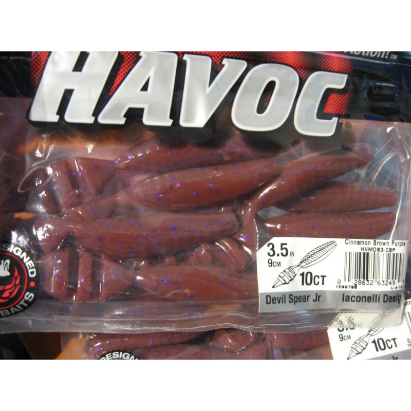 Berkley Havoc Soft Plastic Baits 2 Packs Havoc 3.5" Devil Spear Jr Soft Plastic Fishing Baits Cinnamon Brown Purp