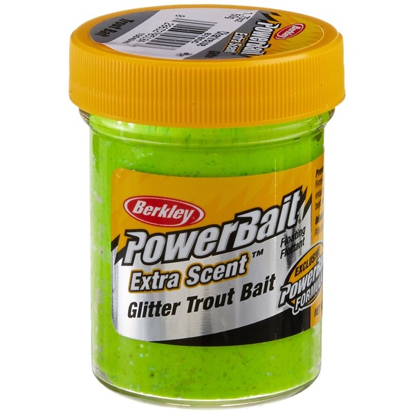 Berkley PowerBait Glitter Trout Bait, Chartreuse, Fishing Dough Bait, Scent Dispersion Technology, Irresistible Scent and Flavor, Moldable and Easy to Use