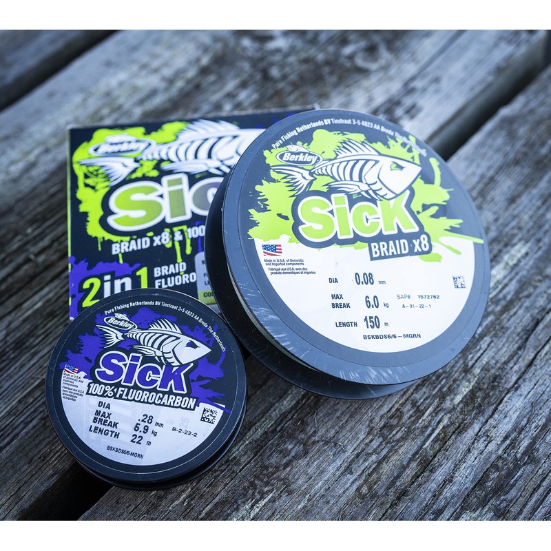 Berkley Sick Braid and Fluorocarbon Leader Pack - Combo of Super Smooth 8 Strands Braided Fishing Line and Fast Sinking, Invisible Fluoro Carbon Leader Wire. For Freshwater and Saltwater Sea Fishing