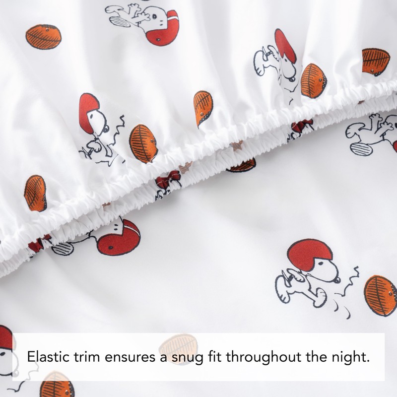 - [Great for Peanuts Fans] This officially licensed Peanuts fitted sheet is made for the Snoopy fan in your life. The fun pattern brings your favorite comic to life, adding a cheerful touch to your decor.