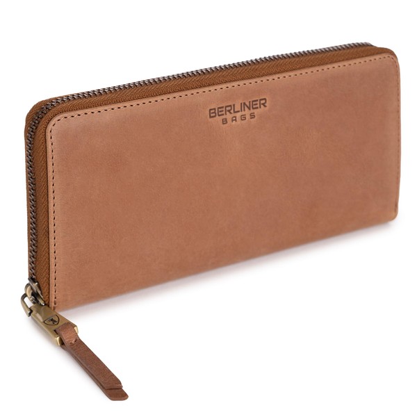 Berliner Bags Premium Palma RFID Blocking Leather Wallet for Women, camel, Minimalist