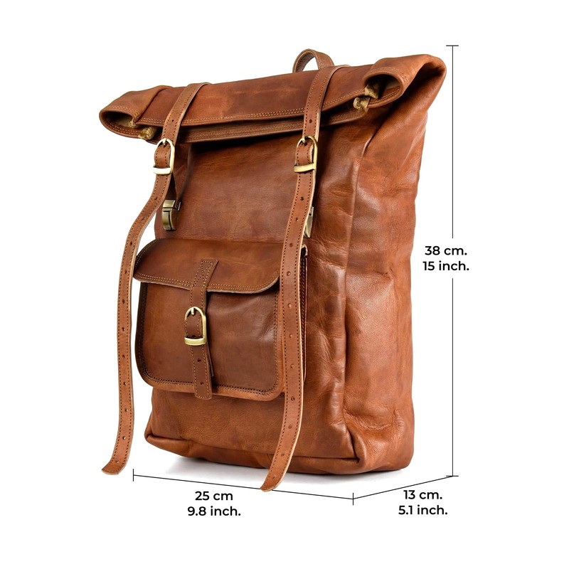 - 🎒MADE TO LAST. The casual Leeds backpack is made of 100% genuine leather and lined with soft cotton. The rolltop closure allows for adjustable storage volume. The vintage style metal buckles and top quality metal YKK zippers add charm and durability to our popular cycling bag