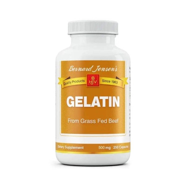Bernard Jensen's Gelatin Capsules, 500mg – 250 Capsules, Gelatin for Healthy Skin, Hair & Nails Support