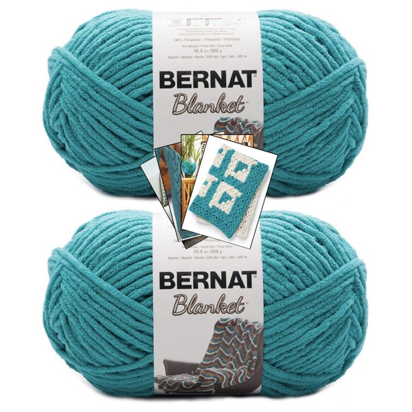 Bernat Blanket Yarn - Big Ball (10.5 oz) - 2 Pack with Pattern Cards in Color (Aquatic)