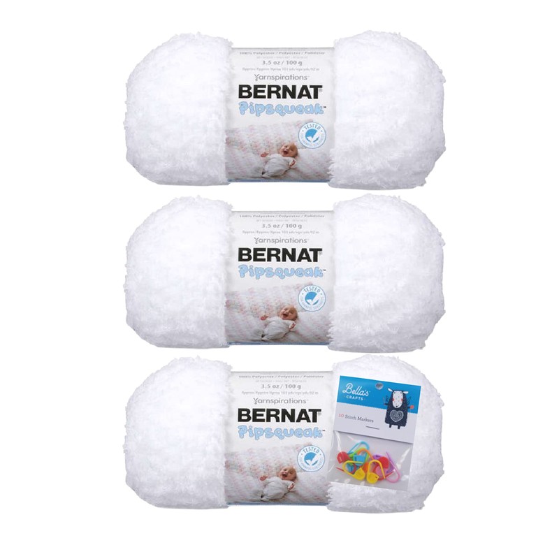 - Bernat Pipsqueak yarn is oh-so-snuggly and perfect for baby garments and accessories! 3-Pack Bundle Seaspray Varg With 10 Bella's Crafts Stitch Markers.
