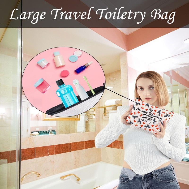 Bernese Mountain Lovers Gift My Bernese Mountain And I Talk Shit About You Makeup Bag Dog Owner Zipper Pouch (My Bernese Mountain)