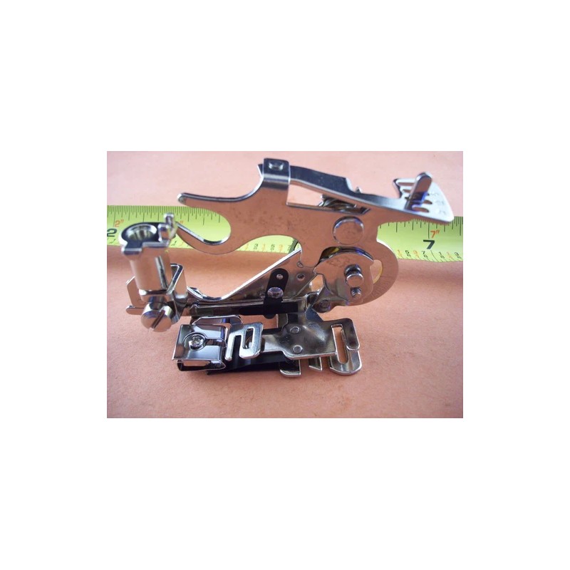 The Ruffler Foot is a real time saver when making anything with ruffles. Gather or tuck one fabric layer and attach it to one or more flat layers in one operation. Can be adjusted to make repeating tucks, narrow pleats, smocking and shirring.