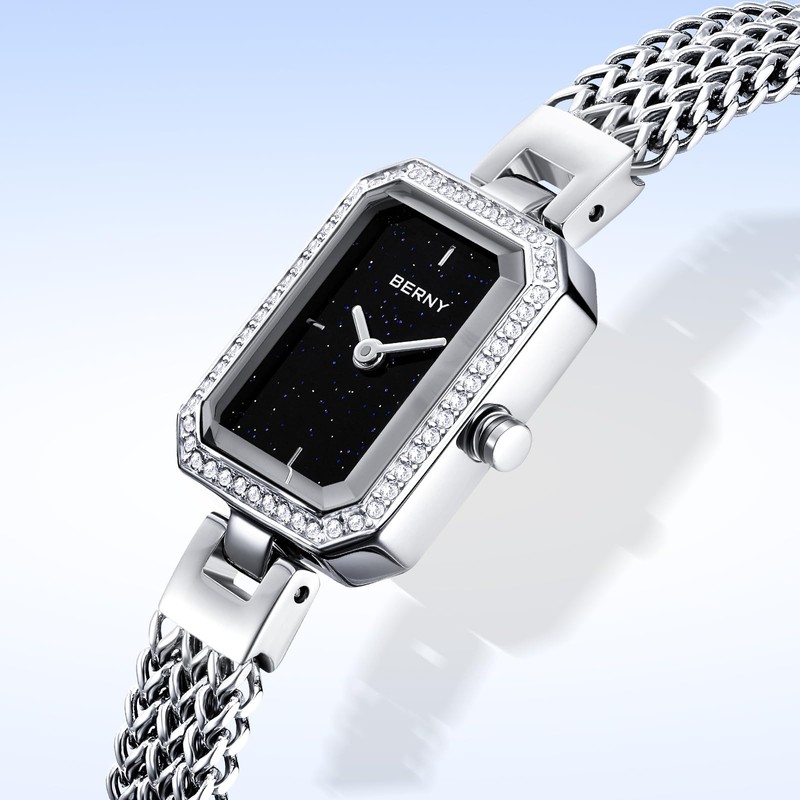- 【Elegant Design】This mini rectangular ladies' watch showcases a raised lens and beveled glass design surrounded by sparkling diamonds that catch the light beautifully, with a perfect blend of colours that transforms timekeeping into an art form and makes every moment a visual delight.making.