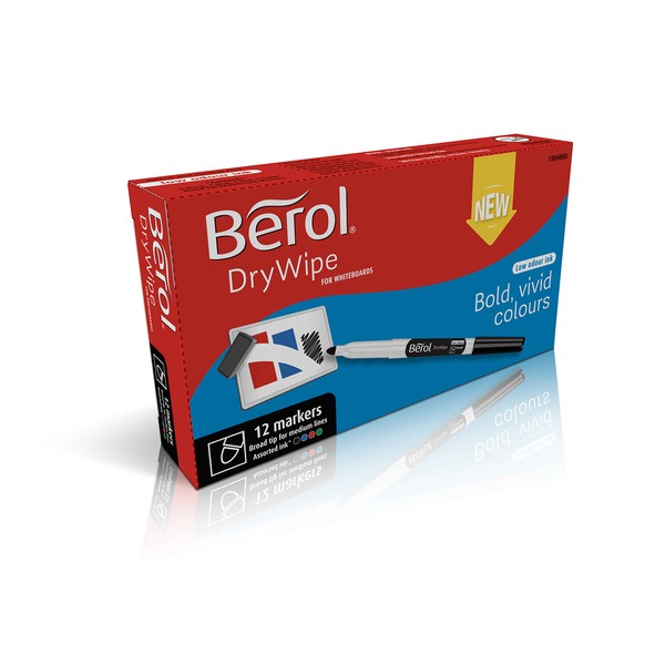 Berol Dry Wipe Broad Tip Whiteboard Pen - Assorted Standard Colours (Pack of 12)