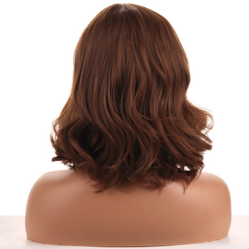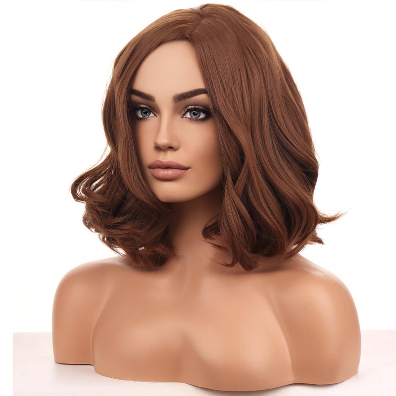 BERON Brown Wigs for Womens Short Curly Wavy Wig Girls Light Brown Side Part Wigs Shoulder Length Heat Resistant Synthetic Daily or Cosplay Party Used Wigs