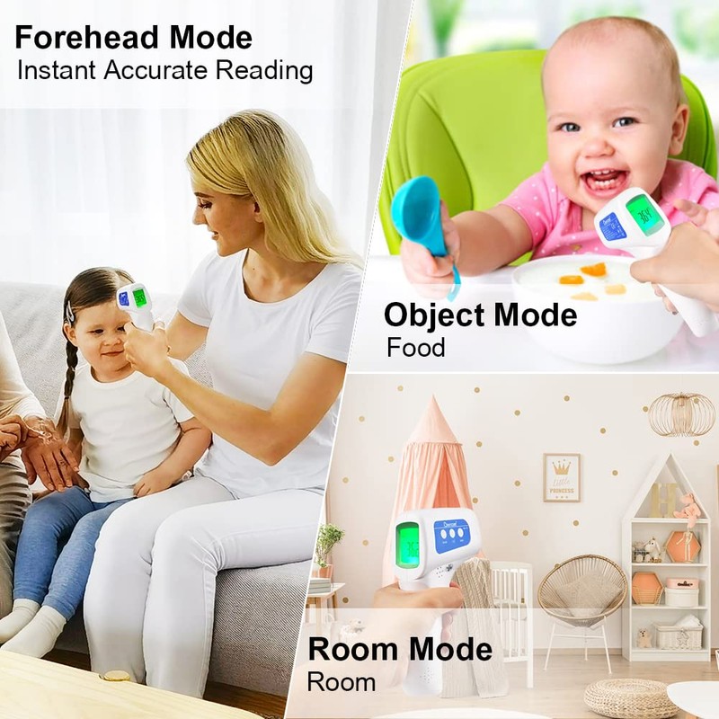 - ✅【3 in 1 Infrared Thermometer】The 3 in 1 infrared thermometer can not only measure body temperature, but also determine the temperature of milk, food and room.The larger LCD screen with backlight makes the readings still visible at night.