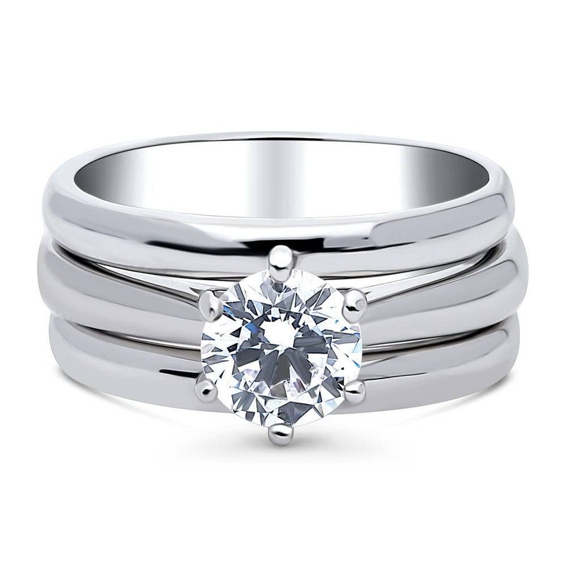 - This 3-piece solitaire ring set showcases an elegant and tasteful interpretation of a timeless classic, boasting a tantalizing center stone embraced by six graceful prongs. Ideal for engagement, this ring will be perfect for your special one.