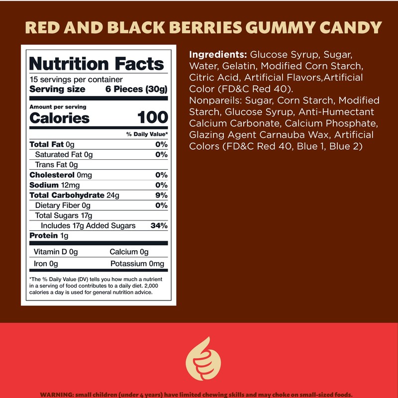 - This bulk bag holds 1 pound of Red and Black Crunchy Berries Gummy Candy