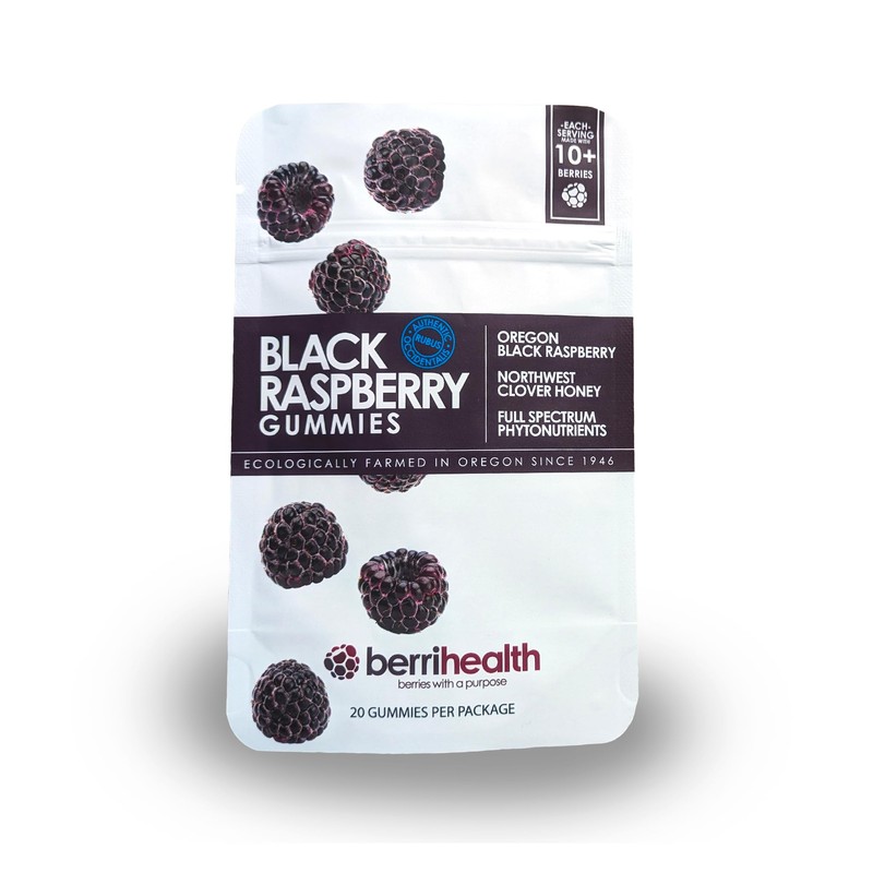 BerriHealth Black Raspberry Gummies - Made with Oregon Black Raspberries and Clover Honey - 20 Count