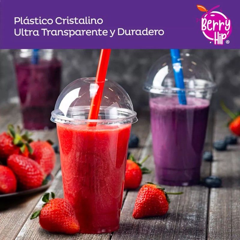 Berry Bloom 100 Vasos Desechables De Plástico Con Tapa Tipo Domo 20 Oz