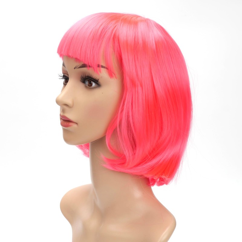 BERRYLION 12 Inch/30cm Bob Wig with Flat Bangs|Short Bob Wigs for Women|Glueless Wig for Costume Cosplay (Neon Pink)