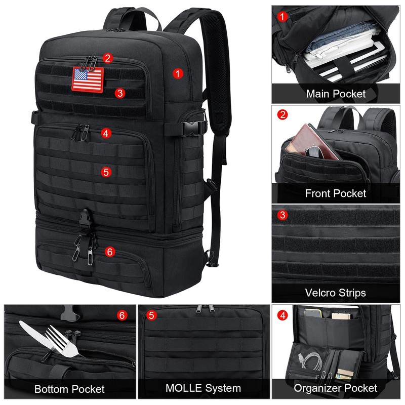 - MULTI-PURPOSE USE: (backpack & lunch bag) and Molle design allow you to use it for almost any situation from laptop backpack, work backpack, travel backpack, weekender backpack, tactical backpack or casual daypack. Perfect for work, picnic, bussiness trip, everyday carry, camping, travel, flight, etc. This item is not intended for use by children 12 and under.