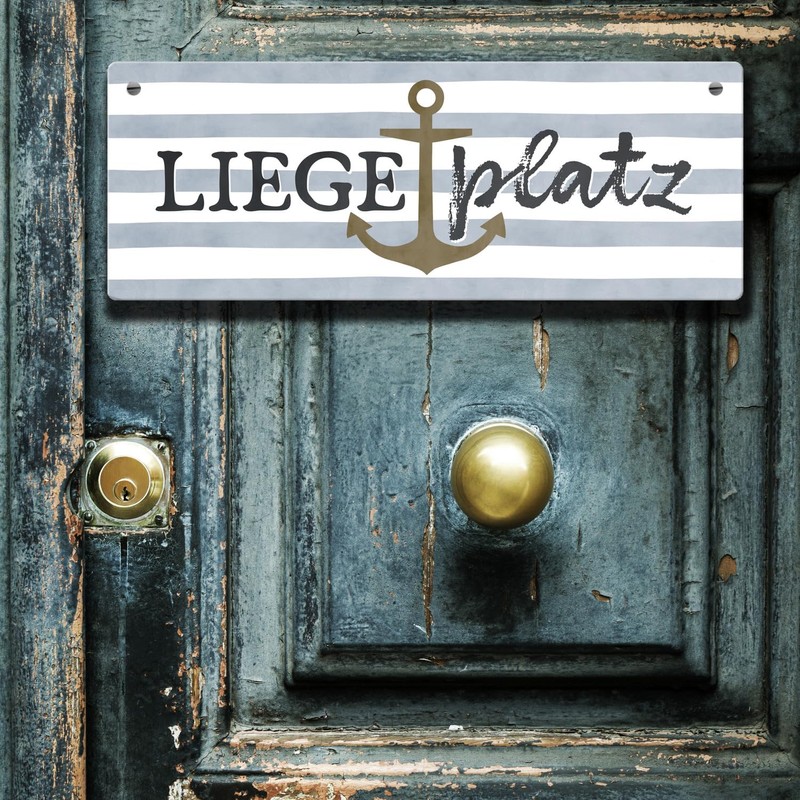 - Ahoy, coastal child! Our anchor metal sign with the charming saying lying place gives your home maritime flair. The anchor against a striped background is not only decorative, but a real eye-catcher. Perfect for any favourite spot, whether on the coast or in the heart of the north.