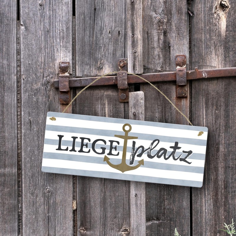 - Ahoy, coastal child! Our anchor metal sign with the charming saying lying place gives your home maritime flair. The anchor against a striped background is not only decorative, but a real eye-catcher. Perfect for any favourite spot, whether on the coast or in the heart of the north.