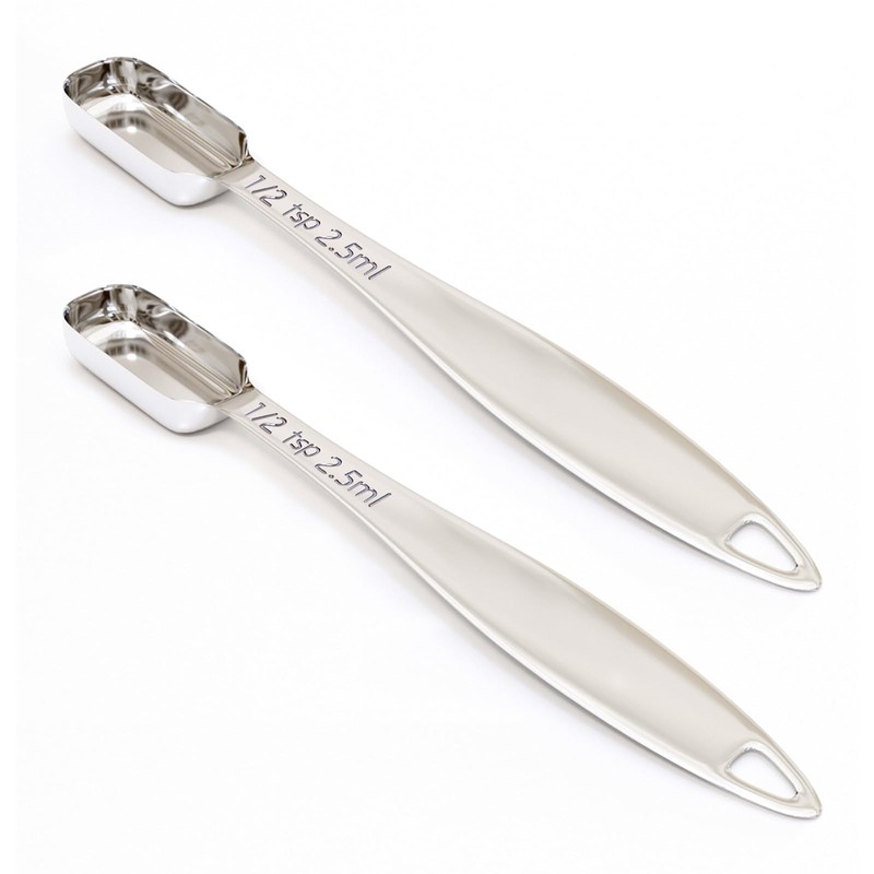 - 【Precise Scales】 The measuring spoon is so precise that it can be the perfect partner for your cooking. The teaspoon has a clear scale on the handle in US and metric.⬤1/2 Tsp | 2.5 mL | 2.5 cc