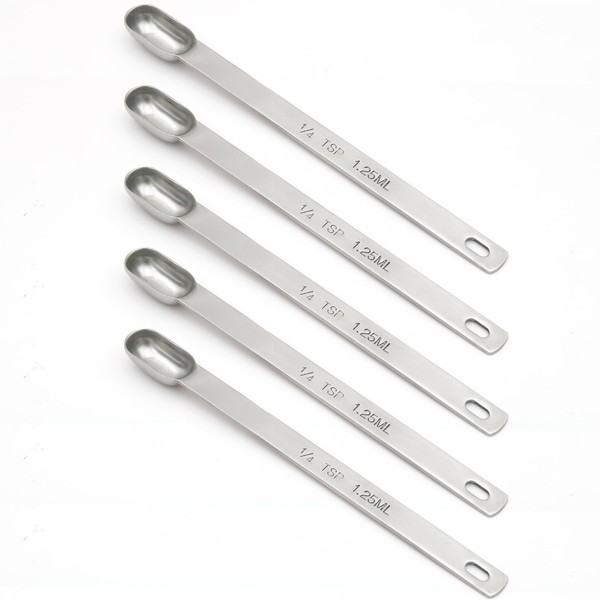 BERYLER 5PCS 1/4tsp (1.25ml) Single Measuring Spoon, Stainless Steel Long Handle Individual Teaspoons Only