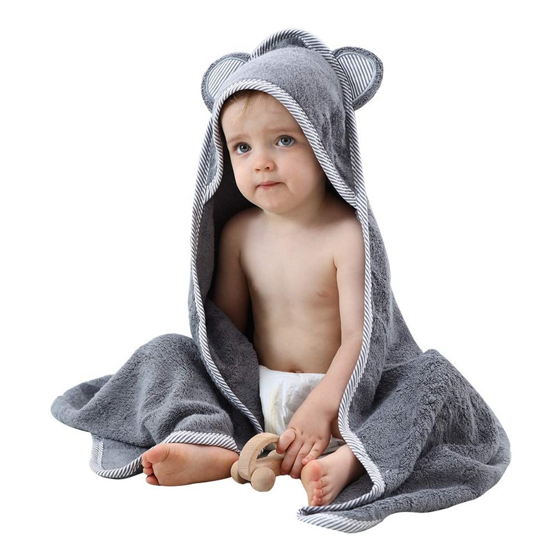 beryris Baby Towels With Hood Newborn 100% Bamboo Hooded Bath Towels For Babies,Toddlers Newborn Baby gifts by 35 * 35Inch Gery Colour With 600GSM Thick Material of Baby Bath Set
