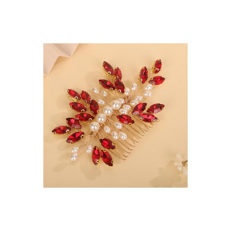 BERYUAN Crystal Rhinestone Hair Comb Rhinestone Pearls Headpiece Teardrop Rhinestone Wedding Hair Accessories for Women (red)