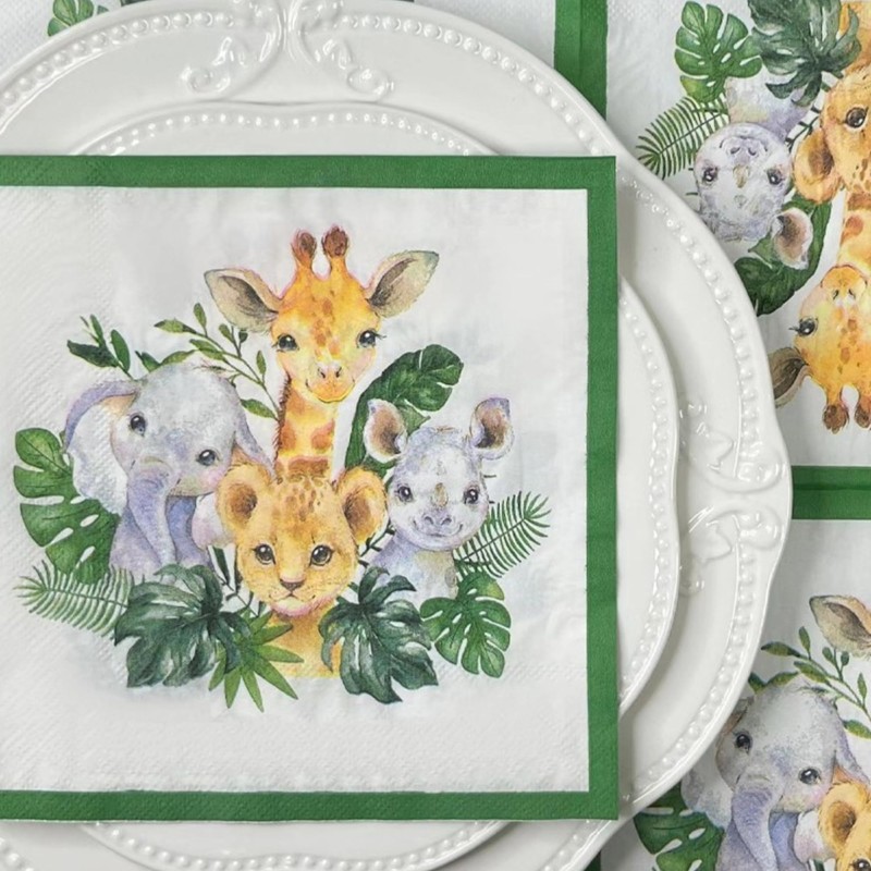 Besalily Decorative Animal Paper Napkins Dinner Size 20-Count/33x33cm/2-Ply Cute Baby Shower Kids Birthday Party Napkins (FR223)
