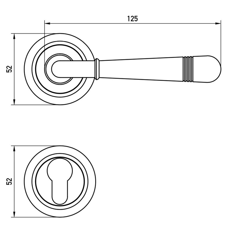 - 1 pair of handles fixed and rotatable on the handle rosettes 52 x 9 mm.