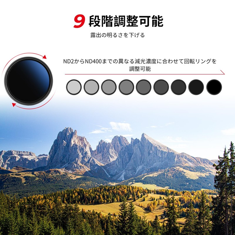 - 【High Quality Material】NITTO polarizing film in Japan allows for neutral and accurate color contrast. With 4 excellent optical glasses and 42 layers of multi-resistant coatings, ND filters allow you to shoot images and videos with confidence