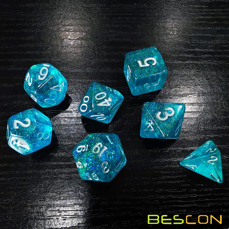 - This is new color from Bescon shimmery dice series. There are glitter shimmery in everywhere in dice, but shimmery is not simply glitter. It is soft, semi-sheer; They spark and vary under different lights.
