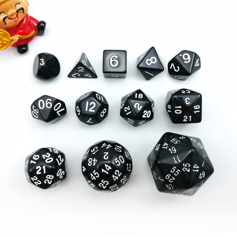 - Complete Polyhedral Dice Set of 12pcs D3-D60 New Style 60 Sides and 50 Sides Dice Set Opaque Black