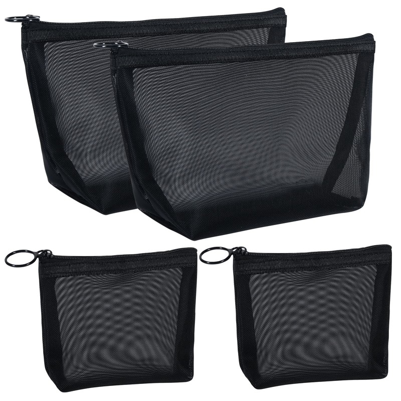 besharppin 4-Pack Mesh Makeup Pouch, Nylon Makeup Pouch, Cosmetic Storage Trinket Storage for Business Trips, Travel (Black)
