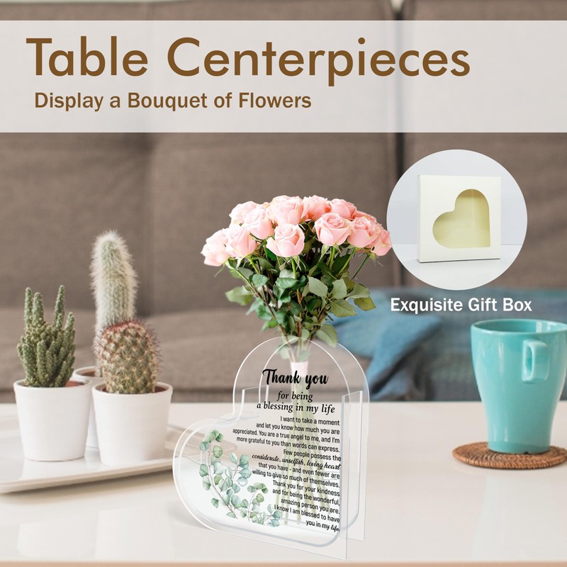 Beshoul Thank You Gifts Heart Flower Vase, Acrylic Appreciation Gifts for Women Men Friends Mom, Greenery Vase Decor for Home, Office, Bedroom-D19